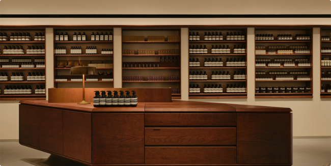 Aesop伊索广州天汇广场店以几何形态为设计语汇,运用两个三角形结构筑成店铺整体空间。这一极具实验性的巧思亦深刻影响了店内家具的设计,不仅向建筑大师贝聿铭的现代主义影响力致敬,更让Aesop伊索内部设计团队得以在不规则的原始结构上构建独特的秩序美学。
